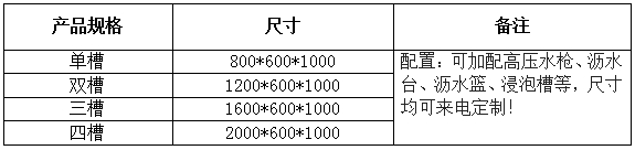配置:可加配高压水枪、沥水台、沥水篮、浸泡槽等,尺寸均可来电定制!